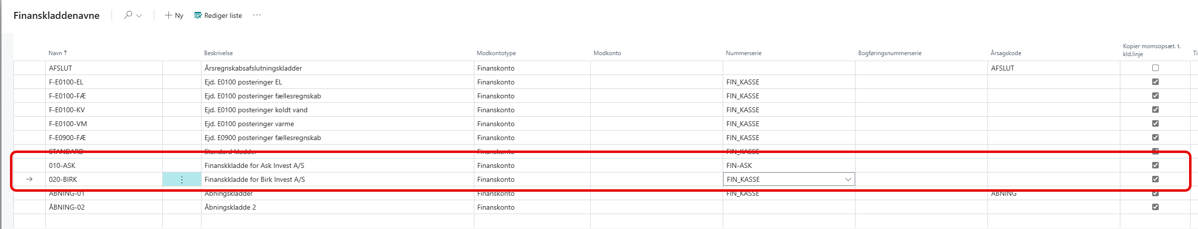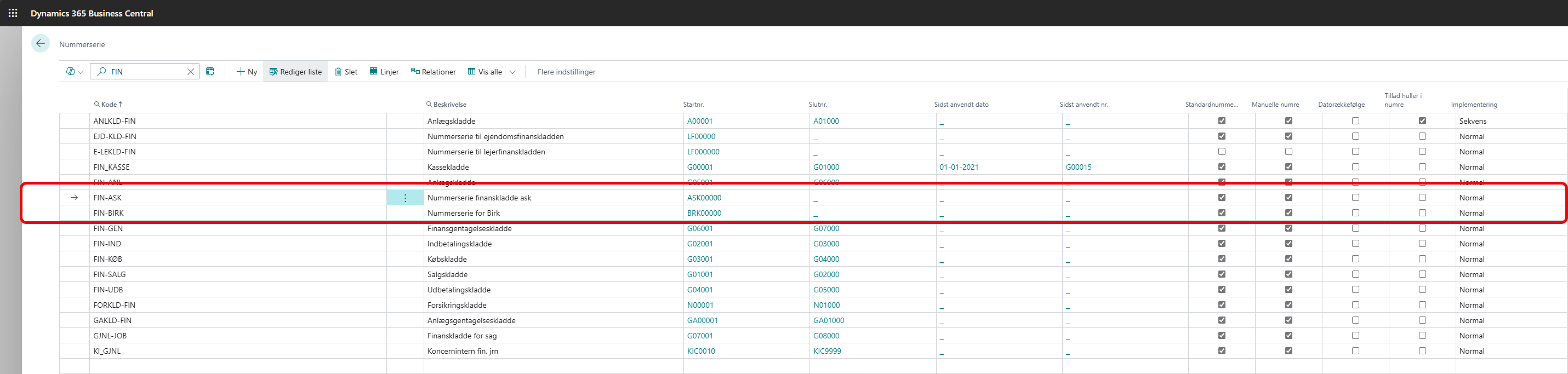 Til sidst i denne artikel kan du finde eksempler på, hvorledes kladder kan vælges opsat for fortløbende nummerering per juridisk enhed. Der laves en ny kladde, og på denne påsættes en nummerserie.