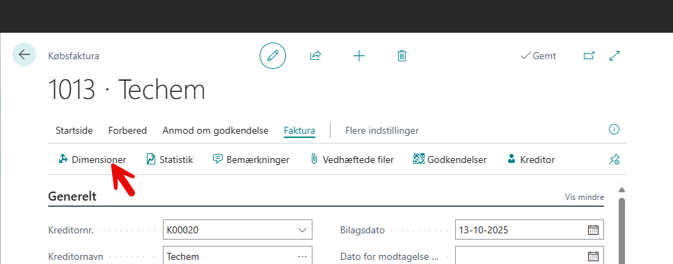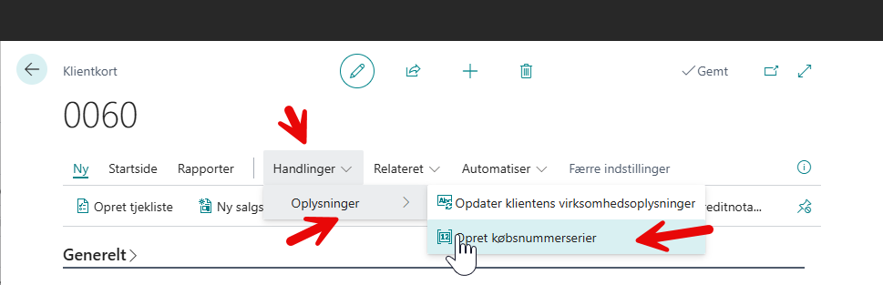 Nummerserier til købsbilag kan oprettes automatisk, jf. nedenstående