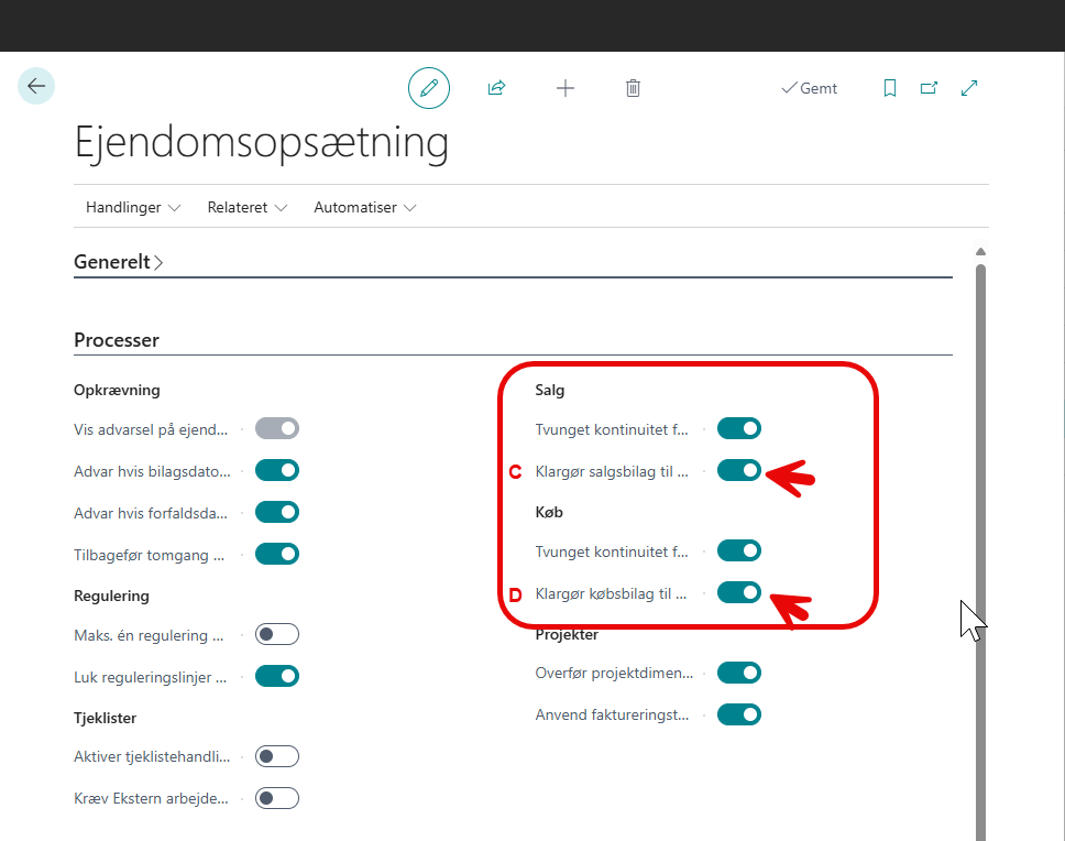 Ved yderligere (dvs. A + B skal være sat til sand) at aktivere C + D udfører systemet "Klargør bilag til bogføring" før enhver bogføring.