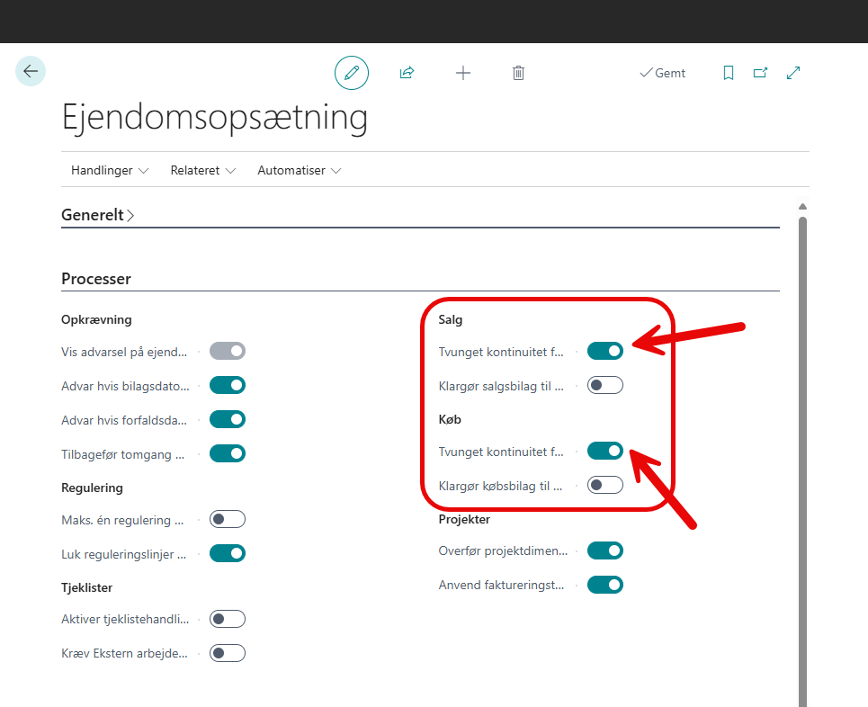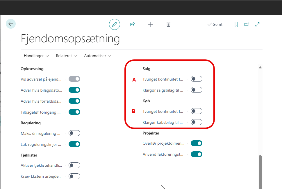 Tvungen kontinuitet for klienters salgsbilagsnumre (A) og Tvungen kontinuitet for købsbilagsnumre (B) sikrer at når der bogføres salgsbilag og købsbilag per klient sker dette med fortløbende bilagsnumre.