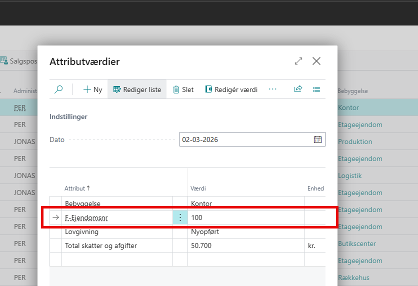 På ejendommen attributværdien, der svarer til ejendommens nummer hos Techem: