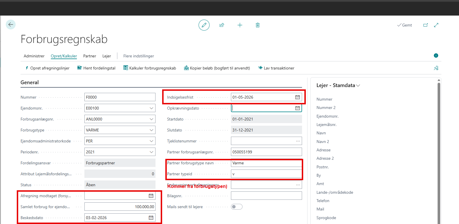 Der skal nu laves et forbrugsregnskab, men sørg for at nedenstående felter er udfyldte.