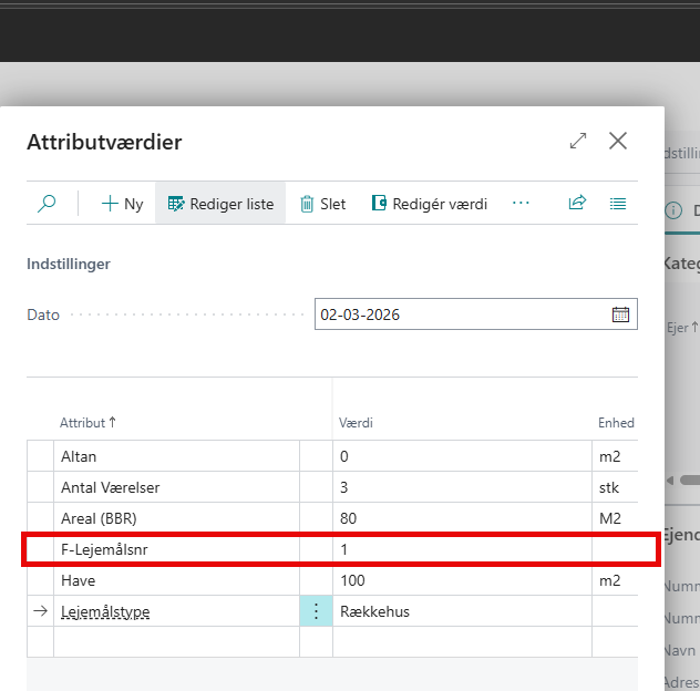 På alle lejemål skal attributværdien, der svarer til forbrugspartnerens lejemålsnummer angives på lejemålet. Det er en heltalsværdi