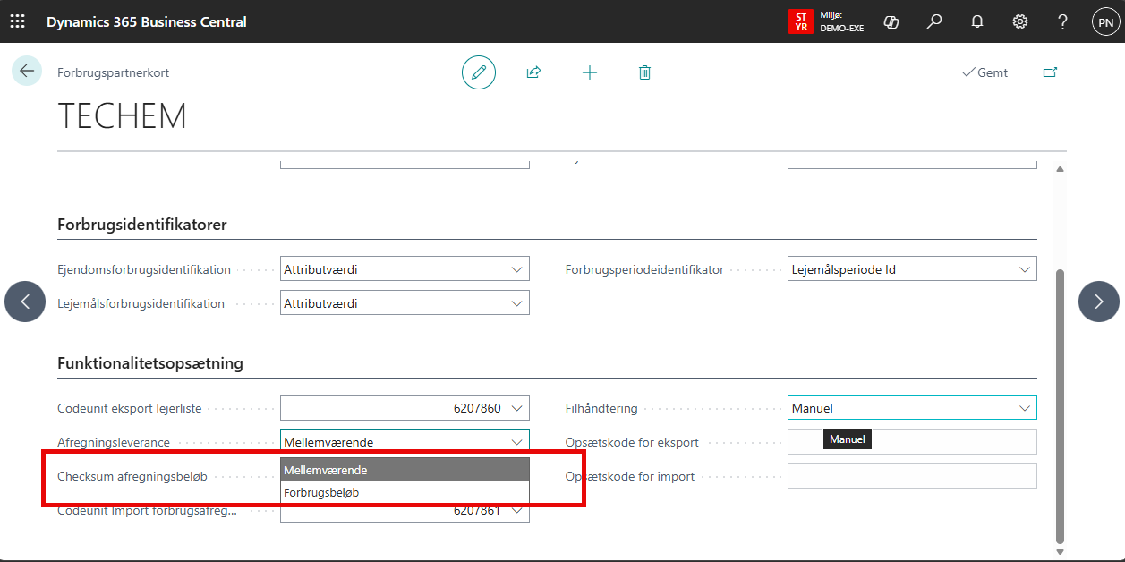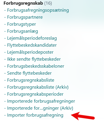 Bemærk at eksempelvis Techem (se forbrugspartnerkortet) anvender mellemværende i filen. Hvordan de importerede viler skal forstås defineres af forbrugspartnerkortet.