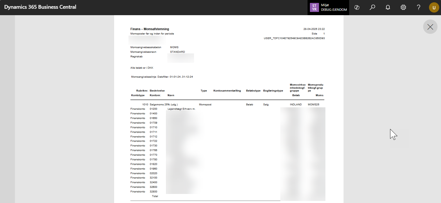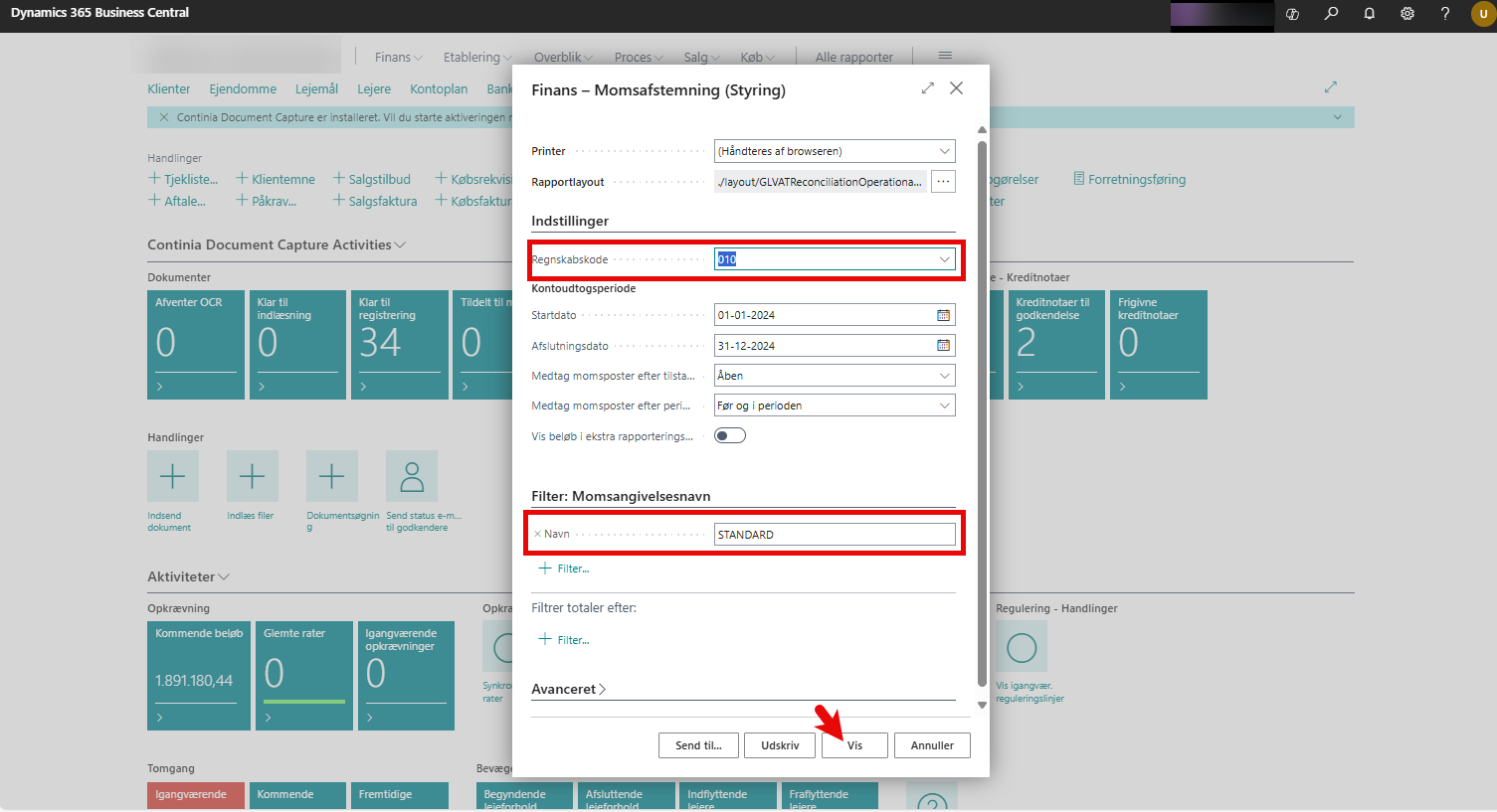 søg nu efter rapporten "Finans - Momsafstemning (Styring)