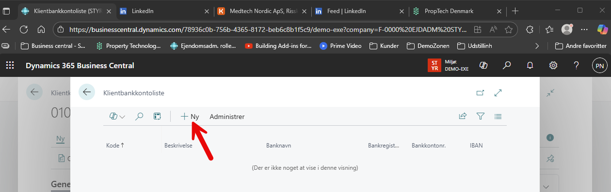 2. Klientlisten fremkommer. Tryk herefter på "Ny"