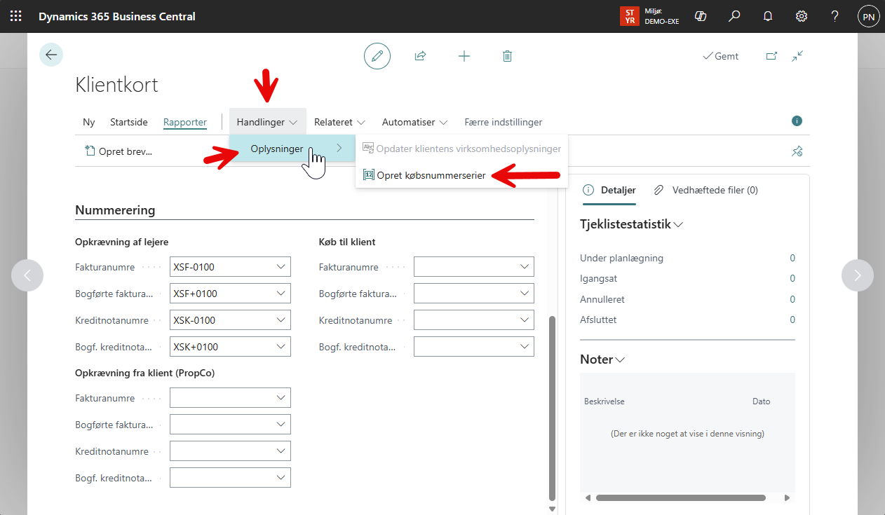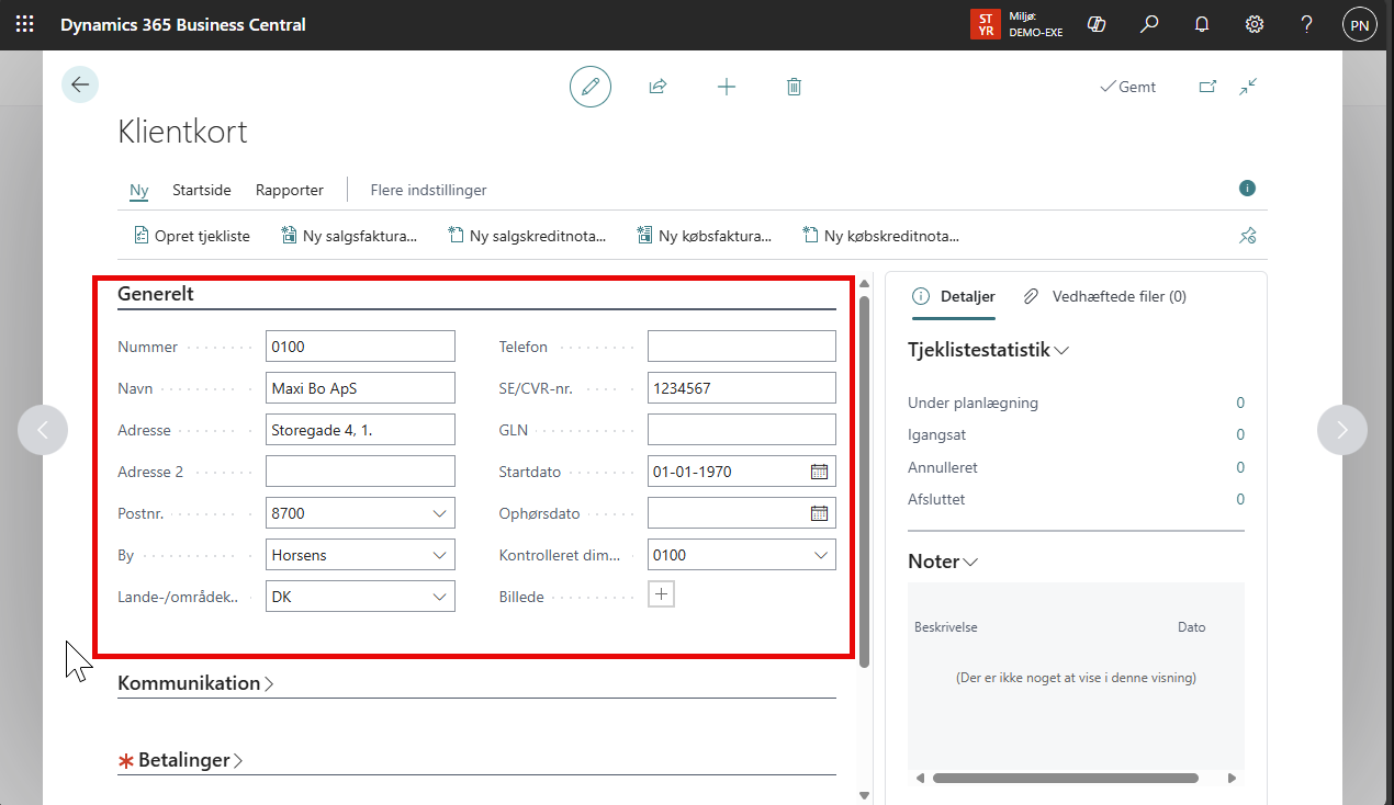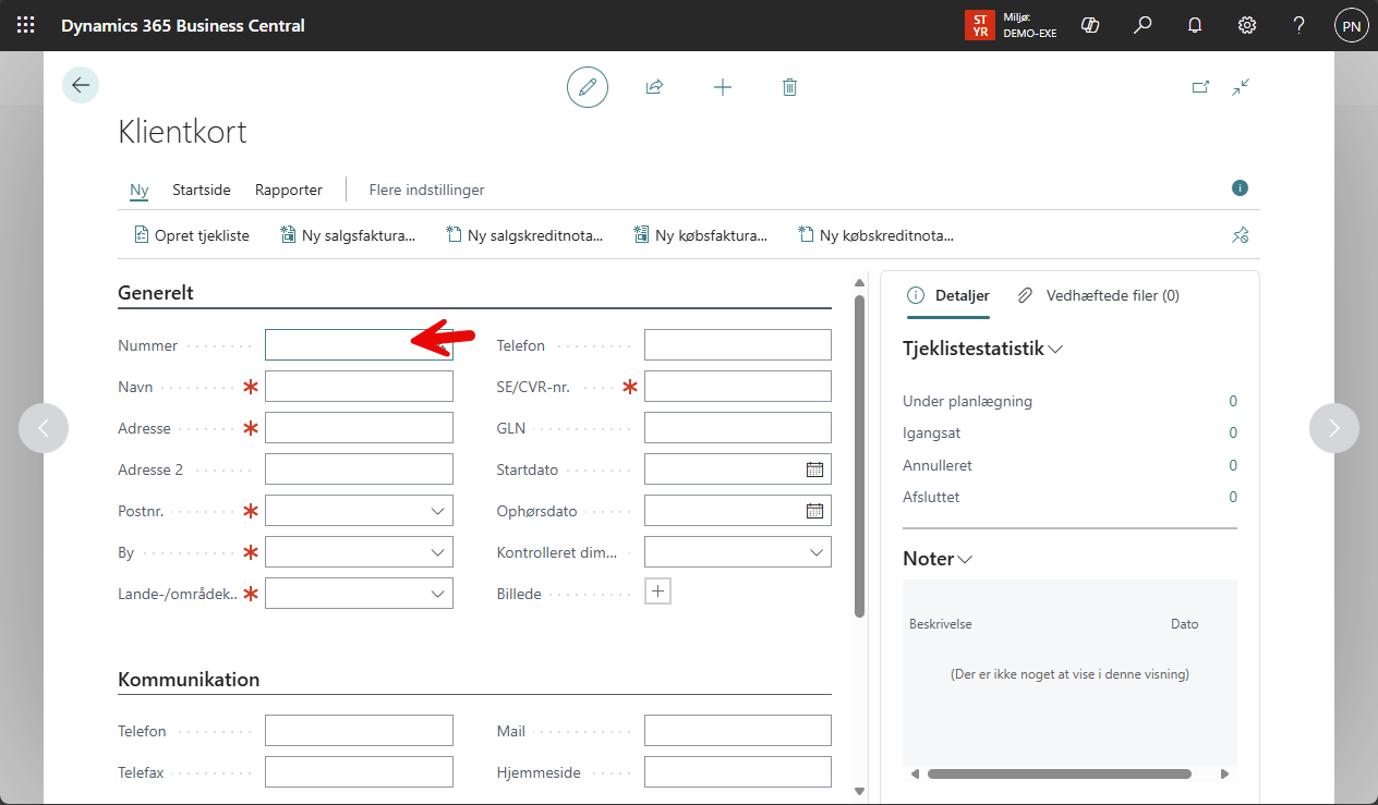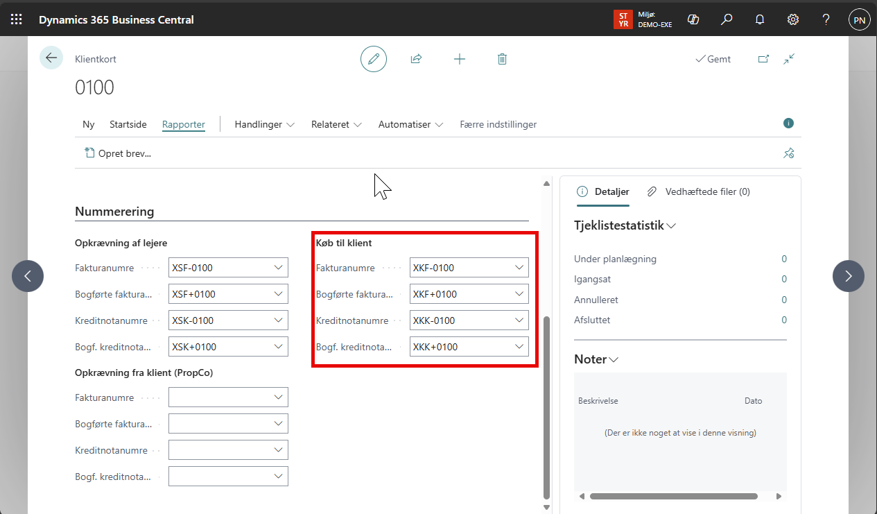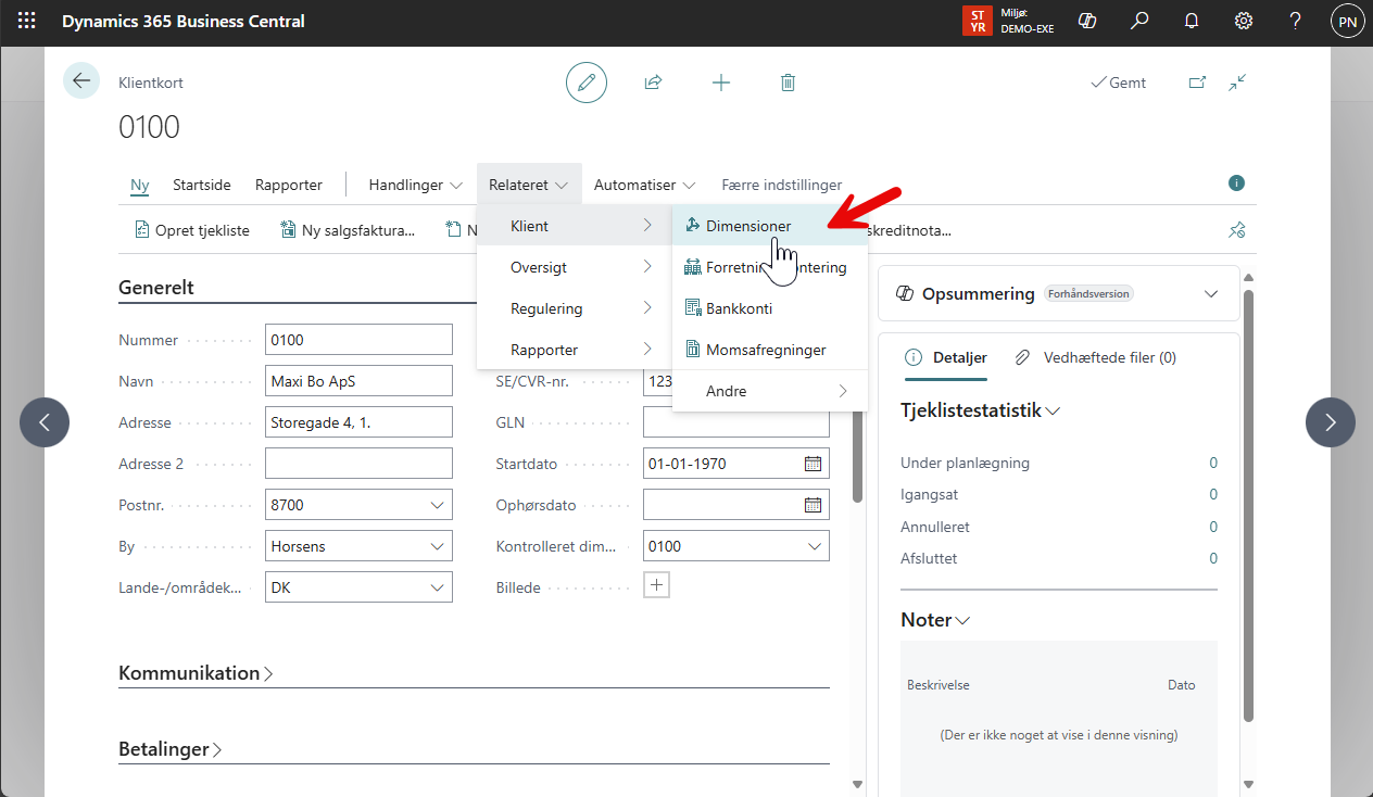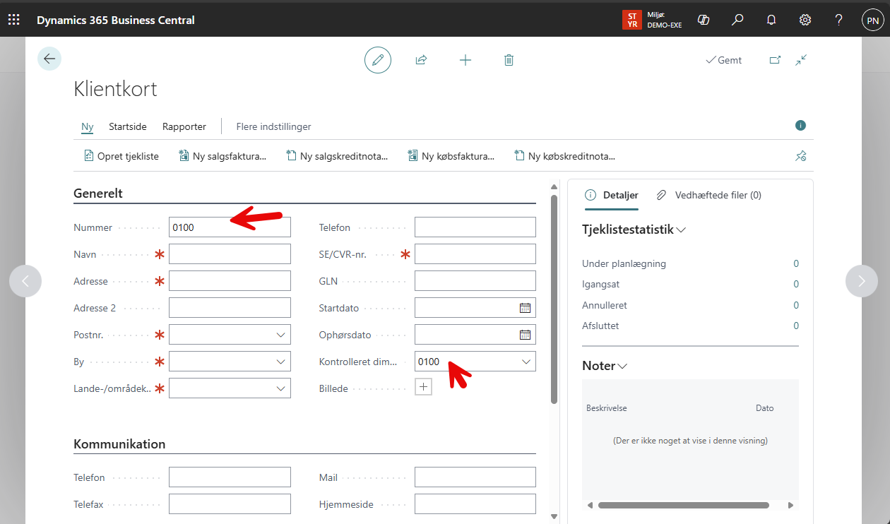 4. Klientnummeret og dimensionsværdien fremkommer automatisk