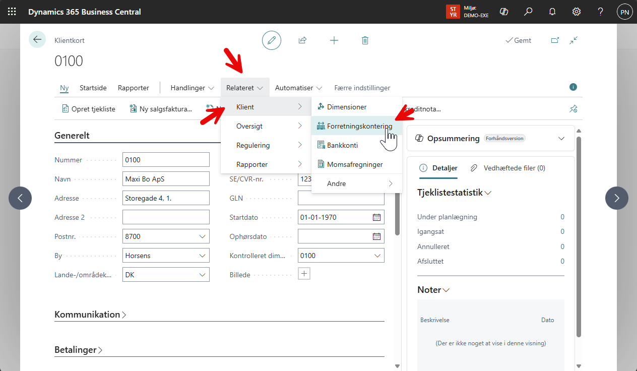 I de mest simple scenarier er opsætningen af klientkortet nu afsluttet. Benytter du forretningsstyring mv. skal du forholde dig til yderligere punkter.