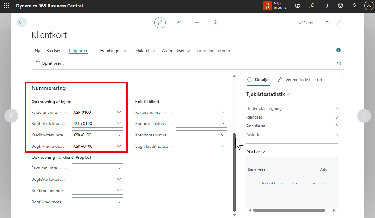 For at nummereringen anvendes kræver det at funktionen er aktiveret i ejendomsopsætningen.