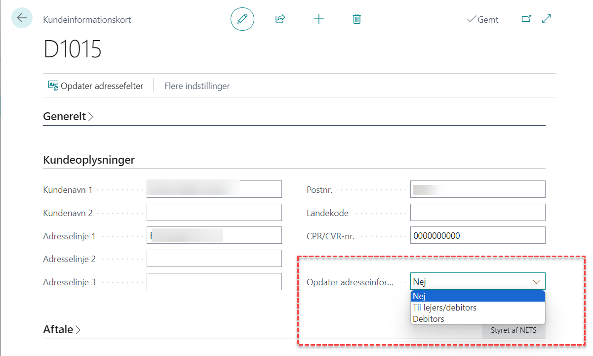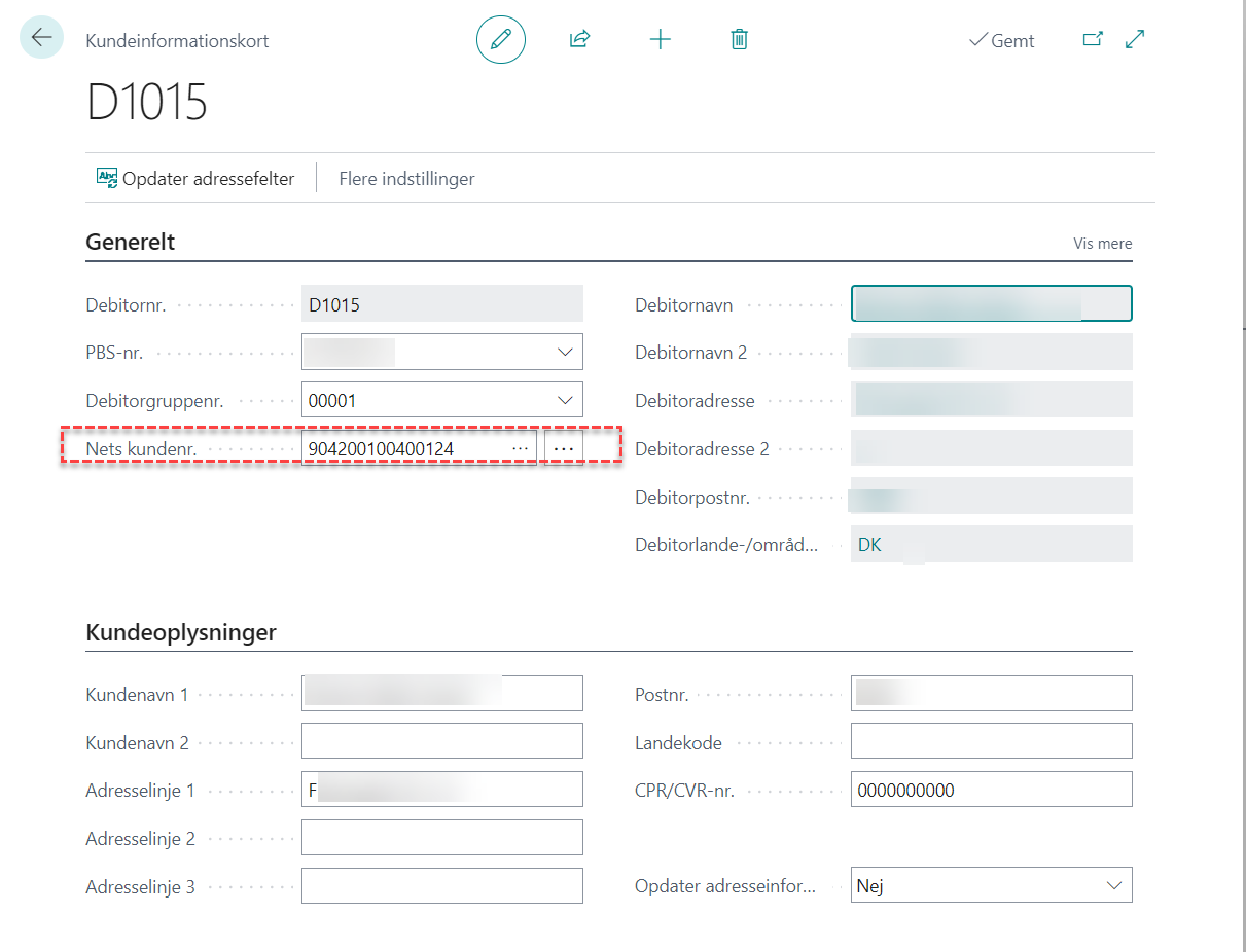 Der skal være oprettet et kundeinformationskort for hver debitor der har betalingsformskoden Nets, eller hver lejer (og dermed den debitor på lejerkortet), der har betalingsformskoden 'Nets'!
