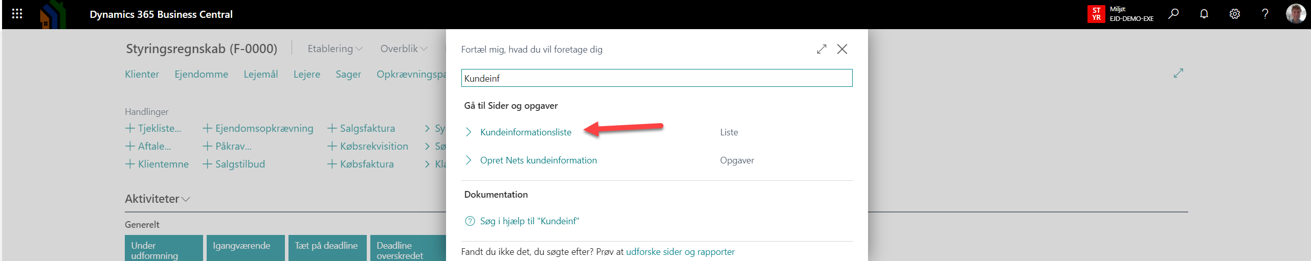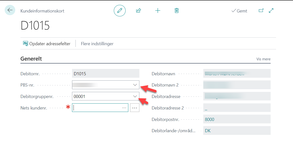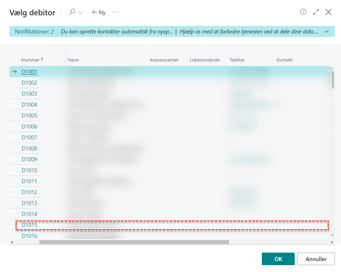Skridt 5: Vælg debitoren Klik på Ok. - et forudfyldt kundeinformationskort kommer op.