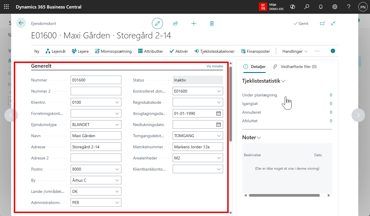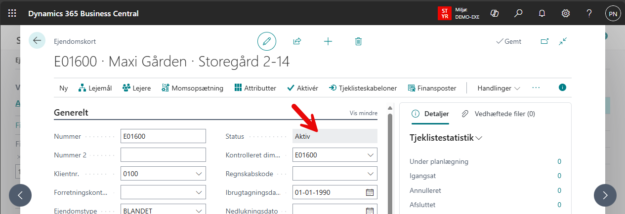 Status skifter herefter til aktiveret og ejendommen er nu klar til at der kan oprettes lejemål på den.