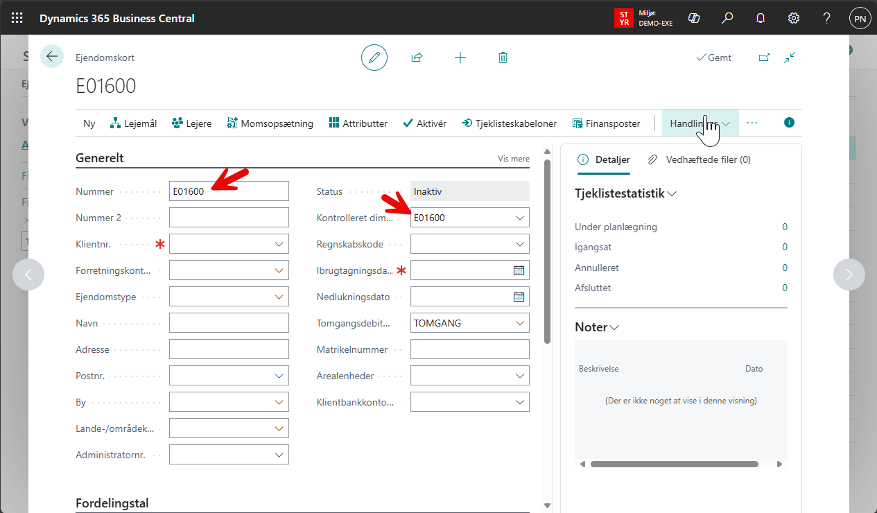 4. Et ejendomsnummer og kontrolleret dimensionsværdi sættes på ejendomskortet