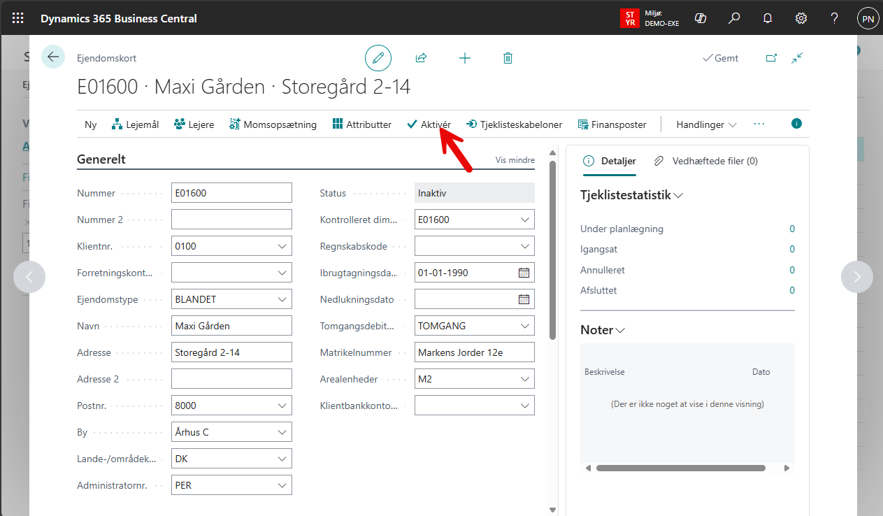 8. Aktiver ejendommen ved at trykke på "Aktiver"