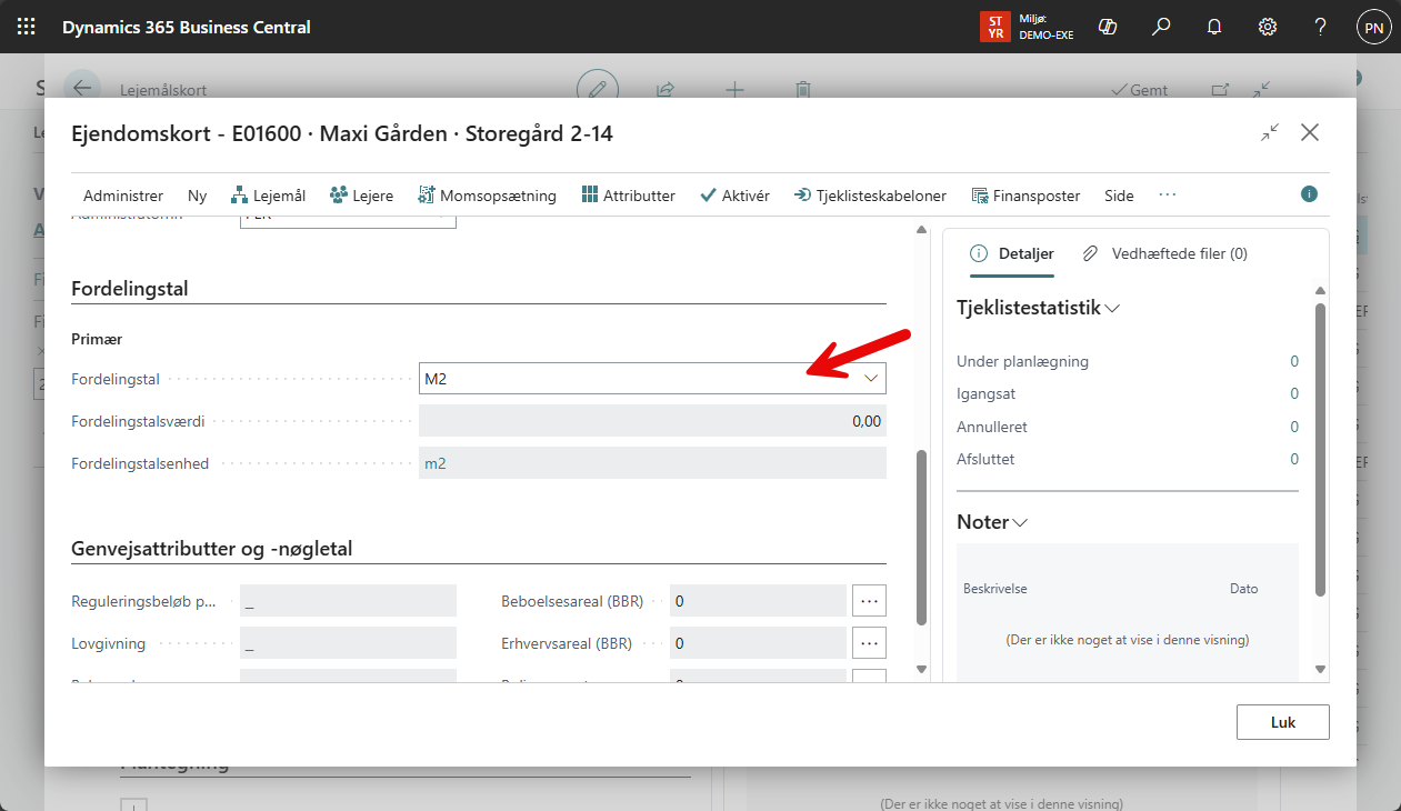 7. i Sektionen Fordelingstal, angiv at fordelingstallet er M2